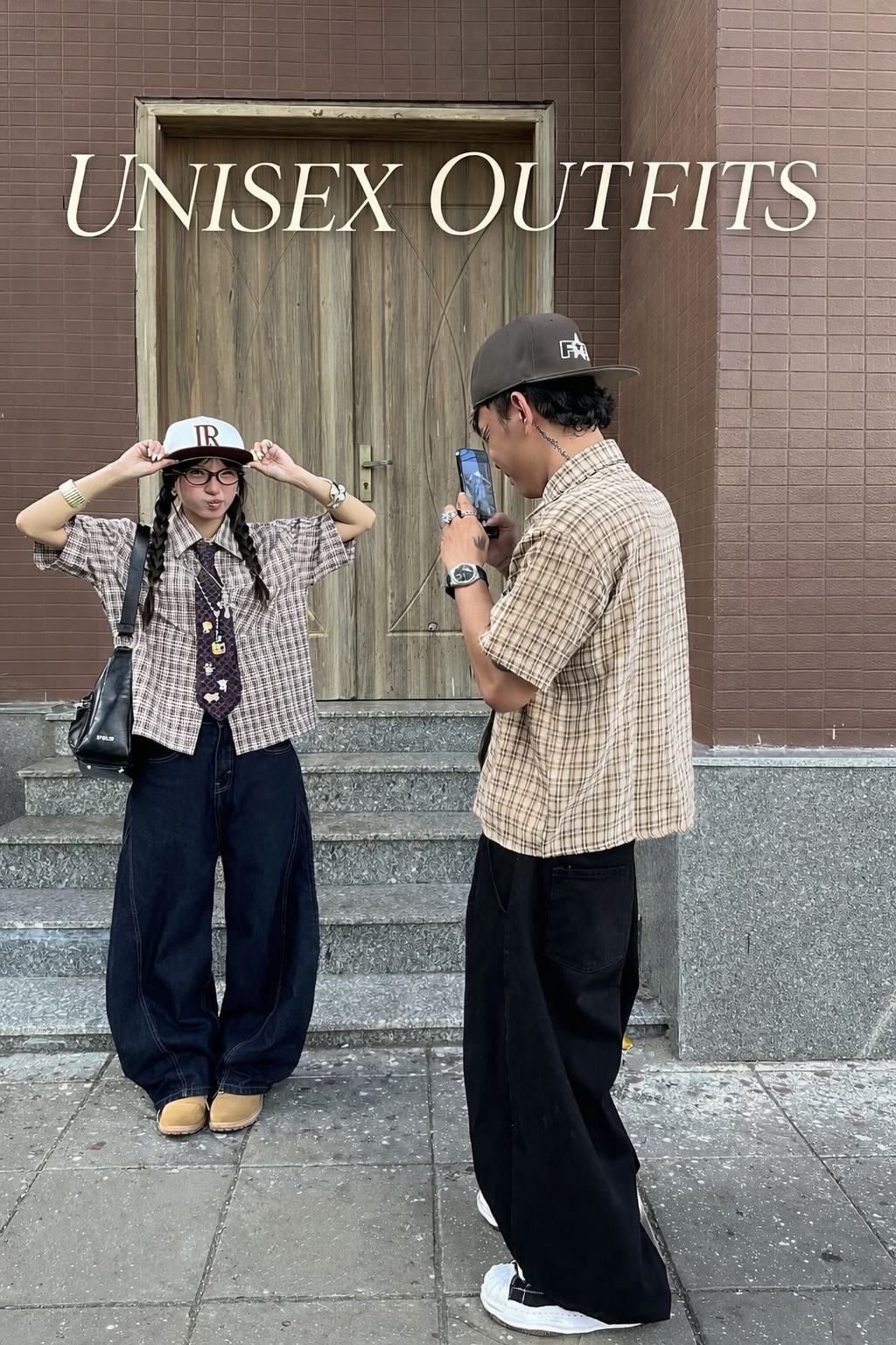 Plaid Pleated Wide Trousers Dark Grey (Unisex)
